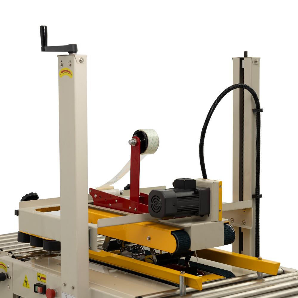 это мощное профессиональное оборудование для одновременной заклейки верхних и нижних стыков картонных коробов клейкой лентой (скотчем). Модель оснащена двумя парами конвейерных ремней (верхней и нижней), которые обеспечивают надежную протяжку коробов без перекоса. Заклейщик предназначен для предприятий пищевой промышленности, складских комплексов, распределительных центров и производств с высоким трафиком упаковки крупногабаритной продукции.