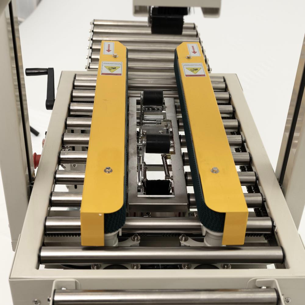 это профессиональное оборудование для быстрой и аккуратной заклейки верхних и нижних стыков картонных коробов клейкой лентой (скотчем). Модель предназначена для малых и средних предприятий в сфере пищевого производства, упаковки и фасовки, складской логистики и интернет-торговли. Заклейщик оснащён боковыми конвейерными ремнями для автоматической протяжки короба, что обеспечивает непрерывный процесс упаковки без необходимости постоянного присутствия оператора.