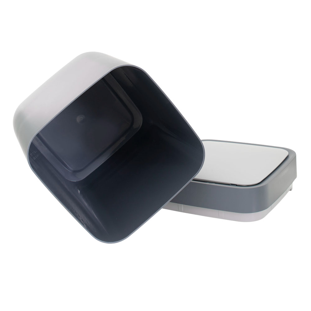 Корпус имеет современный стиль. Множество цветов позволяет выбрать тот вариант, что наиболее гармонично впишется в интерьер вашего дома. Благодаря разнообразию объёмов сенсорные вёдра используют не только дома: на кухне, в санузле, в детской комнате; но и в офисах или обеденных зонах компаний, а также в загородных домах и коттеджах. Надежное ведро-вставка и фиксатор мешка делает использование мусорного ведра удобным на протяжении всего срока эксплуатации. Особенностью данной модели является разнообразие в открытие верхней крышки, которыми возможно воспользоваться в зависимости от ситуации.