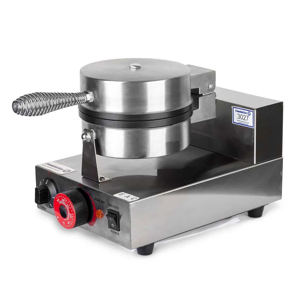 Устройство оснащено регулятором температуры, позволяющим изменять ее в диапазоне вплоть до 300 С. И, что очень важно, ручки вафельницы, купить которую вы можете буквально в один клик, остаются негорячими даже при самых высоких температурных нагрузках. Диаметр жарочной поверхности равен 185 мм. Это вполне достаточно, чтобы приготовить вафлю даже для самых больших сладкоежек.