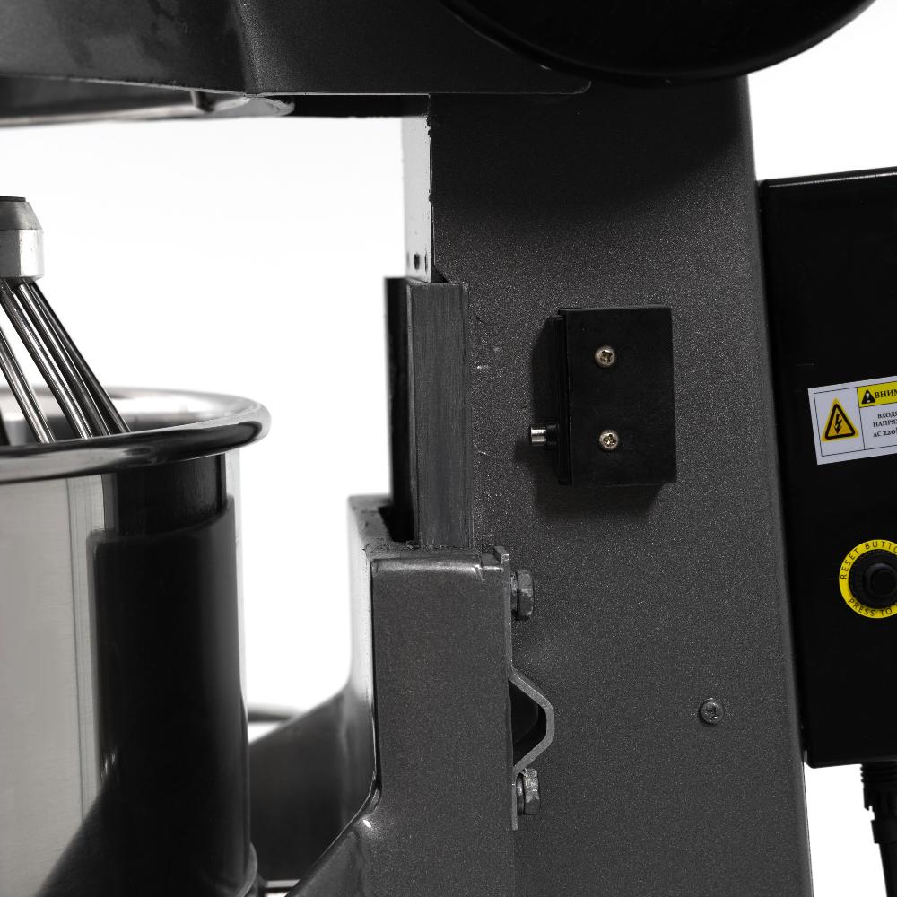 - Подъем/Опускание дежи. Для удобства снятия/установки дежи, при загрузке продукта. Верхние и нижние пределы движения дежи осуществили за счет ограничителей.